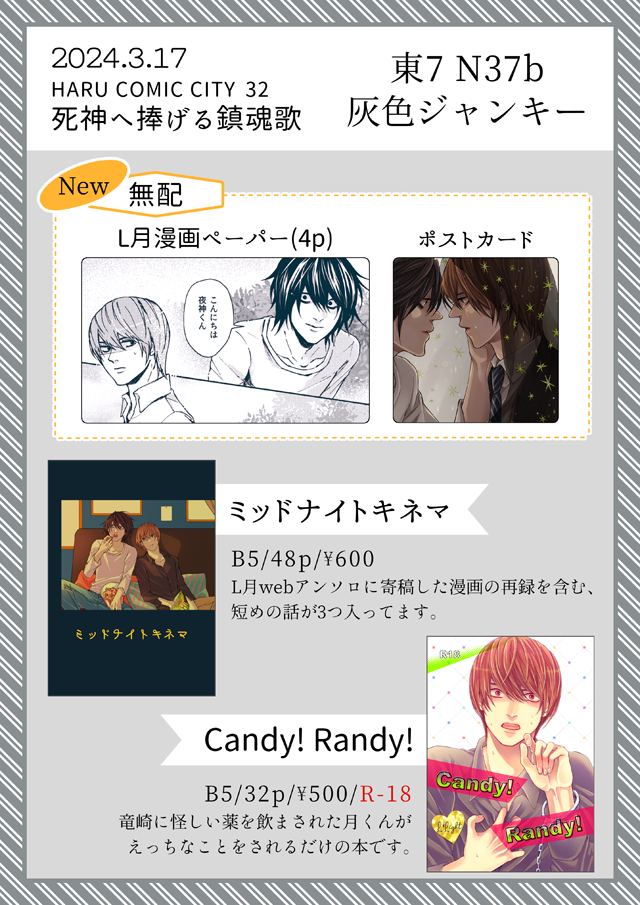 感動して何回もデスノ島を往復しちゃったもんね…ご本とか無配とかたくさんで、麗しいコスさんもいらっしゃって、楽しくて嬉しかったなああ